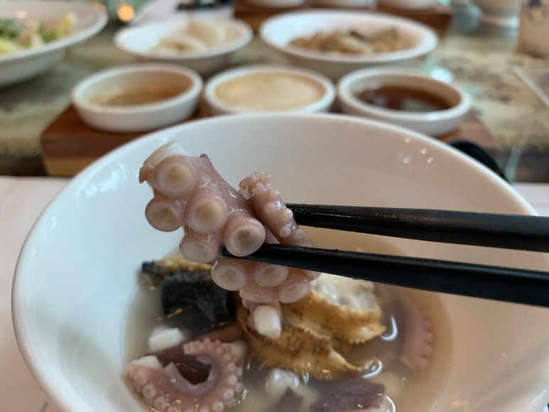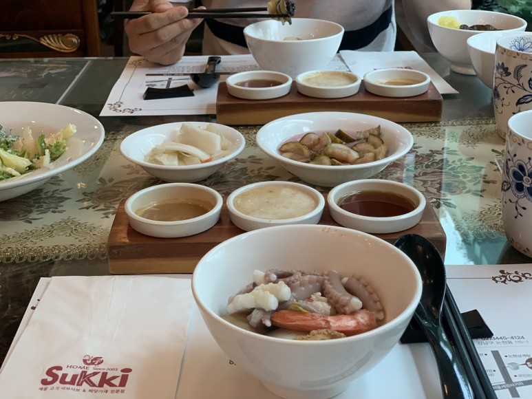 정성을 다해서 맛도 좋다고. 탱글탱글한 조개살도 먹고, 쫄깃한 문어까지 딱딱하지 않아서, 그리고 자극적이지 않아서 더 좋은 해물 샤브샤브였습니다.