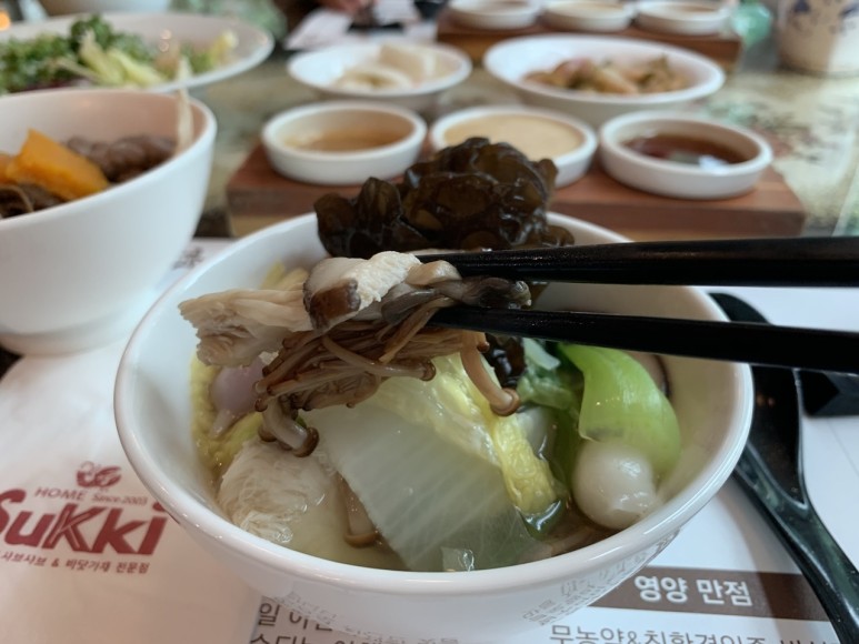 그거에 쓰는 재료는 다 친환경 야채와 버섯잘 재배된 버섯은 특유의 향만큼이나 몸에도 좋을 것입니다.노루, 표고버섯 등이 대표적인 건강 재료입니다.보통 회식을 하면, 술을 많이 마시게 되니까 건강은 커녕 해치게 되지만, 방이동 샤브샤브로 즐기는 회식은 최대한 건강을 지켜주는군요!