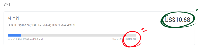 근데… 100달러가 되야 수익을 지급하대요. 아직 10%밖에 채우지 않았기 때문에 계좌 설정은 천천히 해야 합니다.