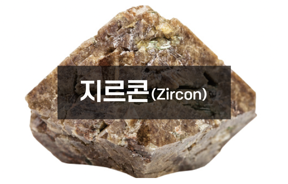 크롬 철광에 매립되어 있는 녹색 결정체가 질콘(Zircon)입니다.