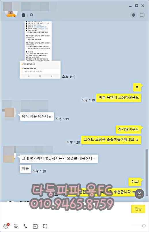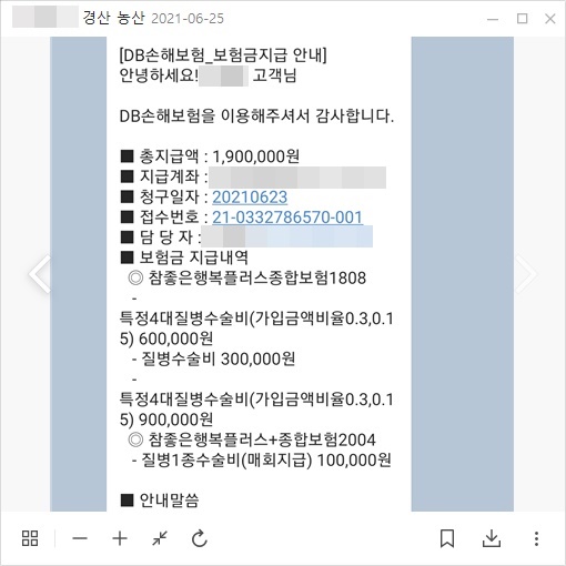 생각보다 많은 보험금 수령에 만족하셨네요.