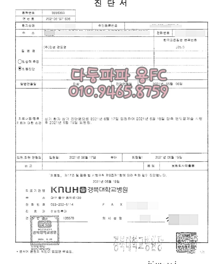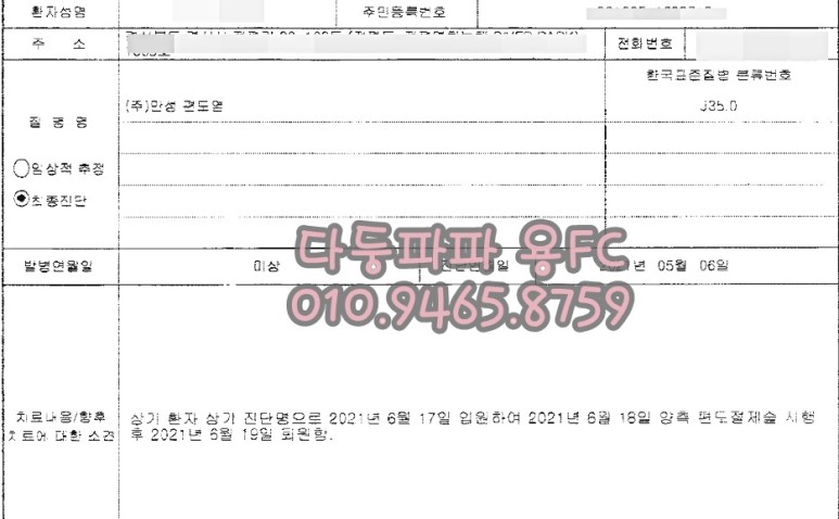 진단서를 보시면 알겠지만 만성 편도염으로 일반적인 절제술에 의한 질병 코드가 정확하게 들어간 경우입니다.
