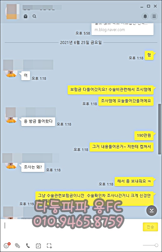 수술비만 190만원 지급 입원일당 3만원 2일 입원 6만원 했고,