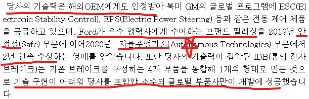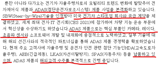 - 첨단운전자 보조시스템 A DAS 기술력 보유 등 다수 기술력 보유