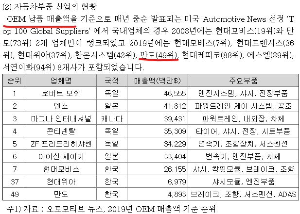 만도의 주식가치를 제대로 받을 수 있을지는…