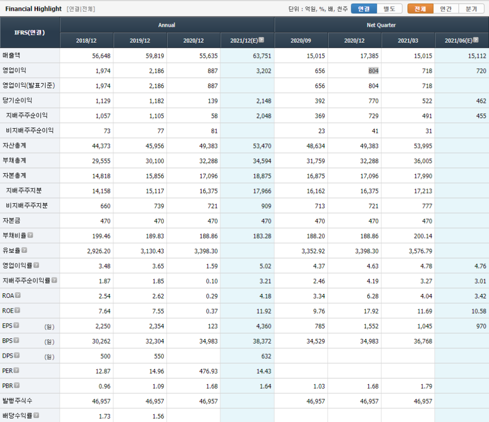 2021년에는 영업이익이 크게 늘어날 전망이다.<부채비율>