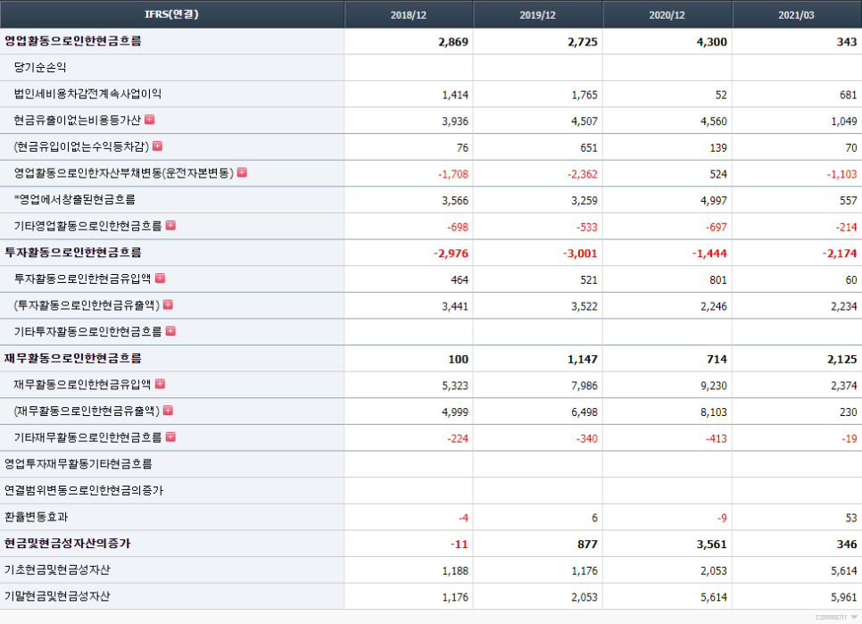 현금 흐름은 좋아요<투자활동 현금흐름>