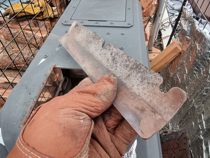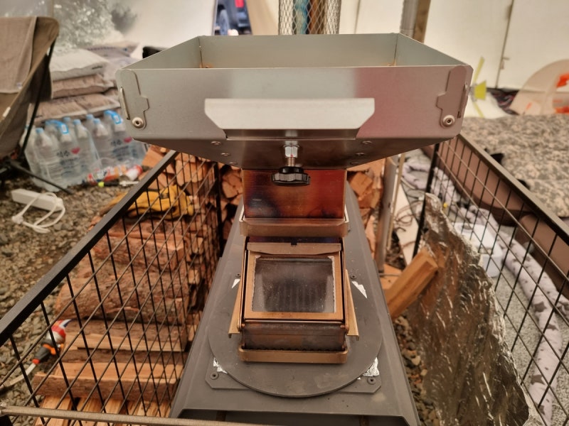 2차 연소판 앞에 보이는 저 틈새로 펠릿불이 꺼진다. 난로 내부에서 불이 얼마나 오래 갇히느냐에 따라 발열량은 비례한다.