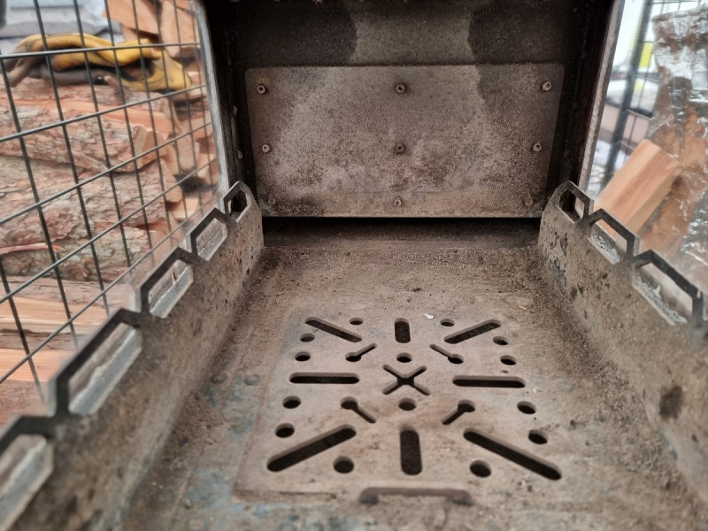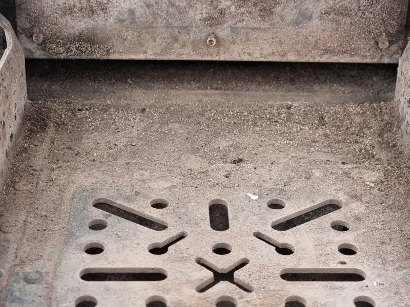 2개월 정도 쓰고 있기 때문에 난로의 화실 안이 더러워지고 있다. 우드 앤드 밴 프로 XL화실 한복판에 위치한 저 구멍 난 연소판은 펠릿이 떨어지고 2차 연소가 되거나 그 아래의 재떨이에 떨어진다. 퇴실하기 전에 난로를 치우지 말고 입실할 때는 난로를 주로 청소한다. 펠릿재가 쌓여서 남은 열이 상당하고 화상의 위험도 있지만 나는 장박라 시간적 여유가 많으니까…화실의 재를 깨끗이? 비웠고 재떨이도 술술 적당히 내다.
