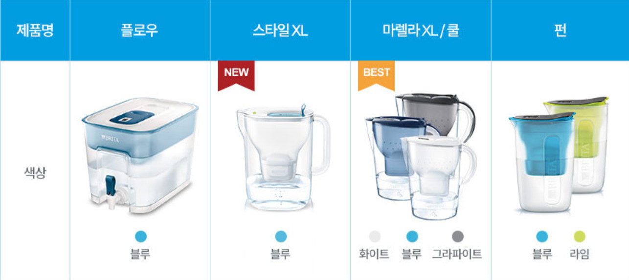 생수를 사먹는데 페트병 환경문제도 그렇고 매번 사기도 귀찮고 코로나 단계가 점점 높아져서 구매가 어려울 수도 있고 여러 가지 이유로 브리타 정수기를 구입했다.오래전에 엄마가 코웨이 정수기를 사용했는데 필터 가격이 비싸거나 문제 물질이 나왔다는 소식도 있었고 또 요즘은 렌탈 서비스도 많았는데 약정 기간이 궁금하고 그런데 진입장벽이 낮은 정수기 발견 그게 브리타 정수기였다.평도 좋았고 같은 종류인 것 같은데 파는 곳에 따라 가격에 차이가 있었다.마렐라는 2만원 초반부터 3만원 후반까지 (스타일이란 모델은 5만원대) 브리타코리아 공식몰에서 구매