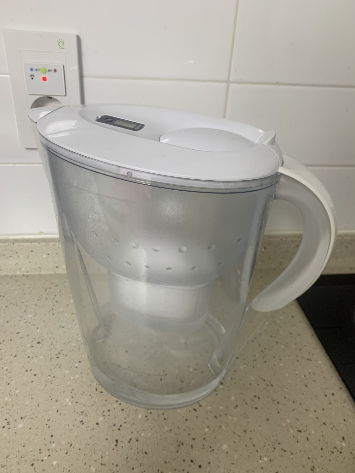 다 꺼내면 이렇게 나와.비닐을 벗겨 보니 큰 물병이 있다근데 겉장에는 독일산이라더니 made in china 좀 불쾌하네.독일 회사의 제조원인데 속은 중국의 뭘 독일에서 만들었다는 거야.브리타코리아 공식몰인데 쇼핑몰 공지내용 포장박스 스티커 안내랑 다르네 이럴줄 알았으면 인터넷 저렴한곳에서 살걸 그랬어.수통이든 원산지 파악도 하지 않고 있다물병 뚜껑 파란색 예쁘다. 개인적으로 좋아하는 색필터다 생각보다 작다.필터는 다행히 made in germany.손바닥보다 작은 크기다.이거 정수가 잘 될까?동전만 한 둥근 것은 LED 센서로 뚜껑 안쪽 홈에 끼우면 된다.물 부을 때 색깔이 나오는데 빨간색이 되면 필터를 교체하면 된대.사용전 물통을 씻고안에 있는 물병도 씻고물을 받는다. 이렇게 세 번 하고 물을 버린 후 사용물은 상당히 빨리 정수된다.뭔가 천천히 하는게 안심이 될것 같지만(물통중국산이라 계속 기분이 안좋은상태)마셔보니 맛은 생수와 비슷한 것 같아.수돗물을 마셔본 적이 없어서 수돗물과는 비교가 안 되네.이렇게 받아놓고 국물 끓여서 커피물 다 쓰자.다음에 누가 사주거나 물어보면 그냥 마켓이나 11번가 등에서 싼 블라타 정수기를 사서 필터만 안전한 곳에서 사라고 권한다.#브리타 #브리타정수기 #생수병약 #환경보호 #간편정수 #수도물정수기공식몰 #브리타냥싼사자 #브리타코리아공식몰 #브리타중국산 #브리타정수기중국산 #브리타정수기독일산 #브리타렐라 #브리타스타일