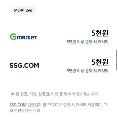5종이 마켓을 언제 이용했는지 기억이 안 나네 최근 11번가, 지마켓, 인터파크 등 플랫폼이 쿠팡과 네이버 쇼핑에 계속 밀리는 느낌이다. 물론 신선식품의 최강자는 맥켈커리가 아닙니다. 역시 SSG닷컴이 최고봉이다. 속으로 5만원 이상을 결제할 때는 무조건 카뱅크를 사용한다. 절대야?
