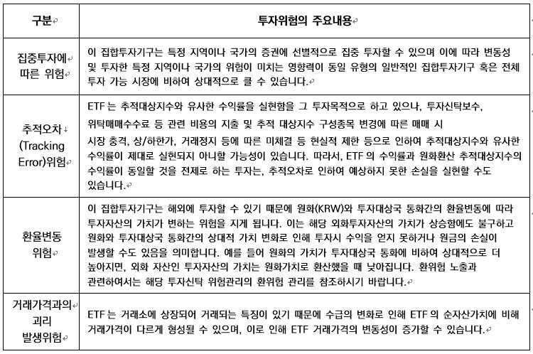 □투자주의 사항·본 자료는, TIGERETF의 매매, 취득 또는 신청의 권유가 아닙니다. 따라서본자료또는그내용을바탕으로투자하거나이에바탕으로투자해서는안됩니다.• TIGER ETF에 투자하기 전에 투자자 또는 잠재적인 투자가는 그러한 투자가 자신의 특정 투자 요구나 목적 및 재무 상황에 적합한지를 고려해야 하며, 필요한 경우 투자자문가와 상담하거나 신탁계약서 및 투자설명서를 충분히 숙지해 판단해야 합니다.• 집합투자증권은 실적배당상품이며, 운용결과에 따른 이익 또는 손실이 투자가에게 귀속됩니다.• 집합투자상품은 예금자보호법에 따라 예금보험공사가 보호하지 않아 원금의 손실이 발생할 수 있습니다.펀드 가입을 결정하기 전에(투자 대상, 환매 방법 및 보수 등에 관해서) 투자 설명서를 반드시 읽어 주세요.• 투자대상국의 시장, 정치, 경제상황 등에 따른 리스크로 인해 자산가치의 손실이 발생할 수 있습니다.과거의 운용 실적이 장래의 수익율을 보증하는 것은 아닙니다.• 본 자료는 미래에셋자산운용이 제작하고 있으며, 본 자료에 포함된 모든 정보는 당사의 승인 없이 복제되어 유통될 수 없습니다.• ETF는 실적배당상품이기 때문에 은행예금과 달리 예금보험공사의 보호를 받지 않아 투자 원리금 전액이 보장 또는 보호되지 않습니다. 따라서 투자원본 전부 또는 일부 손실위험이 존재하고 투자금액의 손실 내지 감소위험은 전적으로 투자자가 부담하게 되며 자산운용사, 판매사 등 어떠한 당사자도 투자손실에 대하여 책임을 지지 않습니다.투자 신탁 재산을 해외 주식이나 주식 관련 딜리버티브 등에 투자하는 것으로써, 유가증권의 가격 변동, 금리 등, 그 외 마크로 경제 지표의 변화에 의한 리스크에 노출됩니다. 또한 투자신탁재산의 가치는 투자대상종목의 발행회사의 영업환경, 재무상황, 신용상태의 악화로 급격히 변동될 수 있습니다.• 증시 규모 등을 감안할 때 투자신탁재산에서 거래량이 풍부하지 않은 종목에 투자할 경우 투자대상종목의 유동성 부족에 따른 환금성에 제약이 발생할 수 있으며 이는 투자신탁재산의 가치하락을 초래할 수 있습니다.• 개인수익자는 보유수익증권을 한국거래소에서 매각하는 방식으로만 현금화가 가능합니다. 즉, 개인투자가는 보유 ETF를 지정 참가 회사에 되팔아 신청할 수 없습니다. 이것은 개인투자가가 부담해야 할 과세표준을 확인할 수 없는 한계에 의한 것입니다. 따라서, 한국 거래소에서 ETF 수익증권의 거래가 부족해, 개인 수익자가 원하는 가격으로 필요한 수량을 매각할 수 없는 경우에는, 그 개인 수익자가 보유한 ETF 수익증권의 현금화가 어려워질 수 있습니다. ※ 기관투자가의 경우, 보유 유가증권을 한국 거래소에서 매도하거나 ETF 수익 증권을 설정 단위 또는 그 정배수에 의해 판매 회사 또는 지정 참가 회사에 환매 신청하는 경우는, 판매 회사 또는 지정 참가 회사에서 환매가 가능합니다.• ETF는 거래소에 상장되어 거래되는 특징이 있기 때문에 수급변화에 따라 ETF의 순자산가치에 비해 거래가격이 다를 수 있으며, 이로 인해 ETF 거래가격의 변동성이 증가할 수 있습니다.• 보다 상세한 투자위험에 대한 이해를 위해 투자 전에 반드시 투자설명서를 확인하십시오(www.tigeretf.com)• 당사는 퇴직연금에 관하여 충분히 설명할 의무가 있으며 투자자는 투자에 앞서 그 설명을 충분히 들어주시기 바랍니다.과세 기준·과세 방법은 향후, 세법개정등에 의해 변동하는 경우가 있습니다.• 연금계좌 계약기간 만료 전 중도해지 또는 계약기간 종료 후 연금 이외의 형태로 수령하는 경우 세액공제를 받은 납부원금 및 수익에 대하여 기타소득세(16.5% 분리과세) 등 높은 세율이 부과될 수 있습니다.• 증권거래비용 기타비용이 추가로 발생할 수 있습니다.• 환율의 변동으로 외화자산의 투자가치가 변동되어 이익 또는 손실을 입기도 합니다.