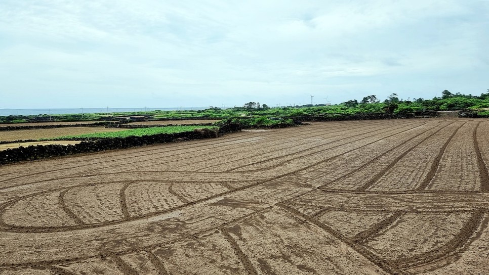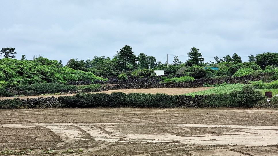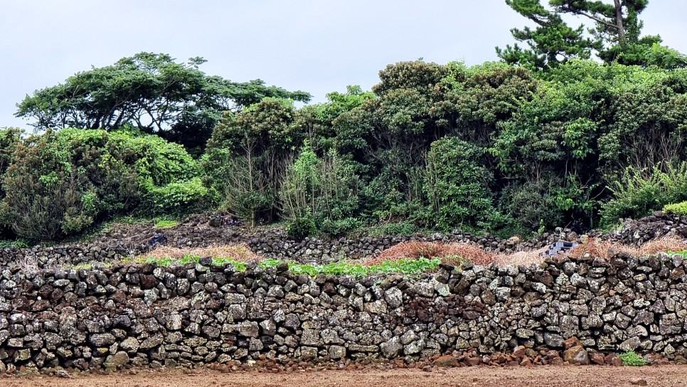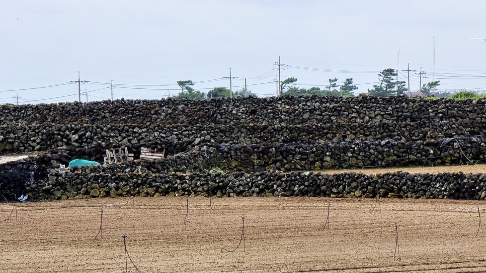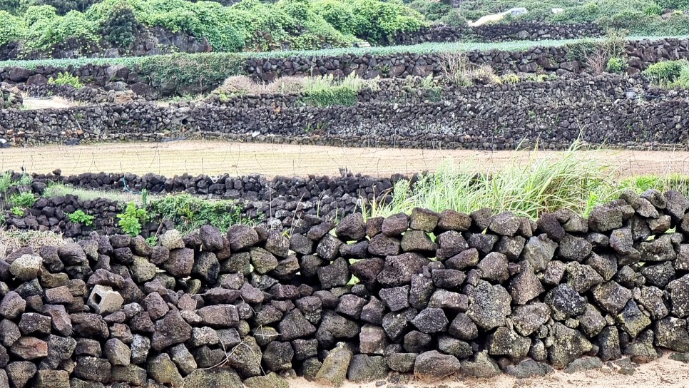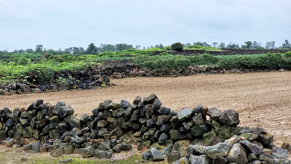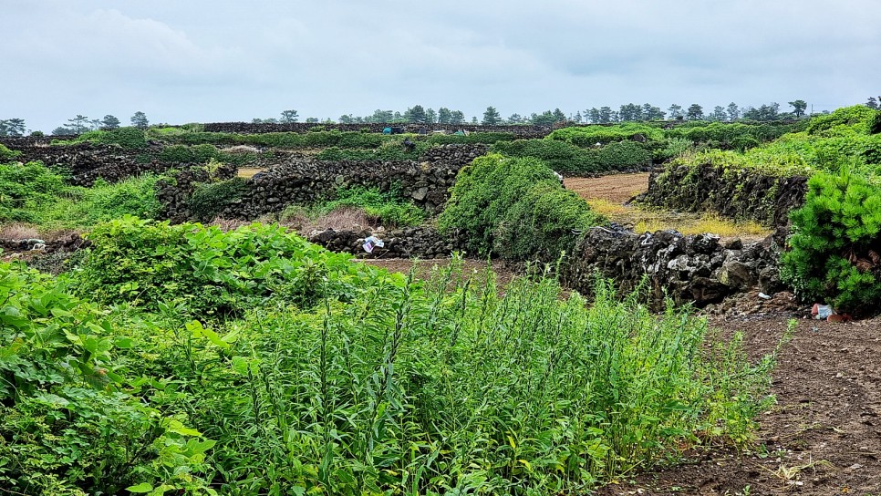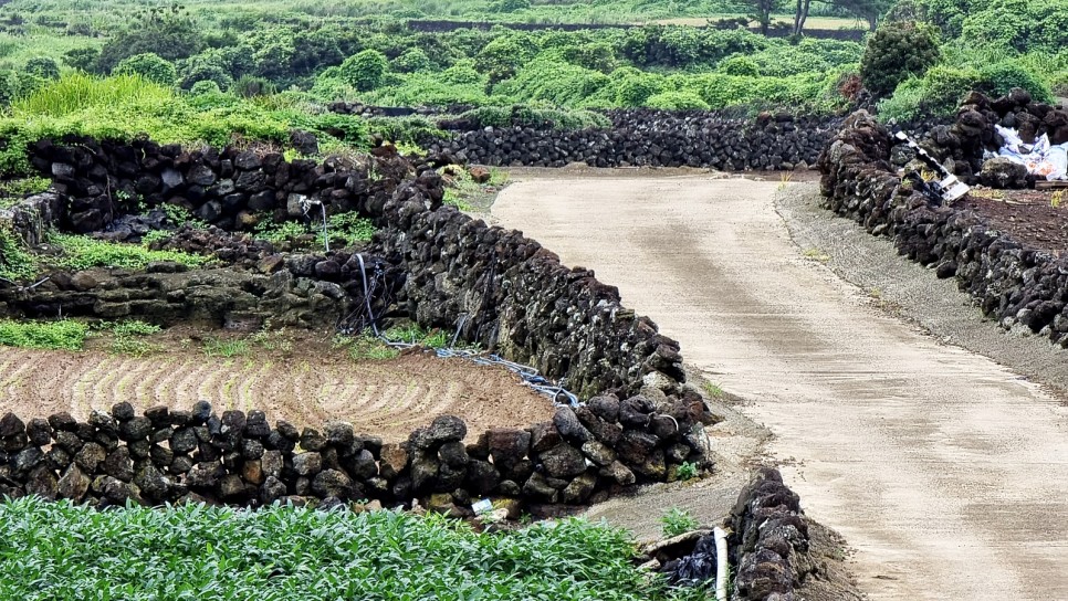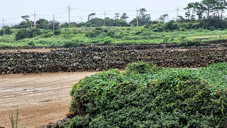 검은 제주도 검은 현무암으로 쌓아 경계를 나눈 밭에는 콩이 익기 시작한 모습이다.