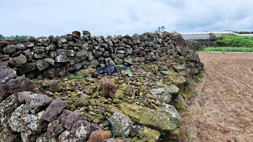 경계를 따라 밭담을 잘 쌓은 모습이다. 높이 쌓은 밭담의 모습인데,