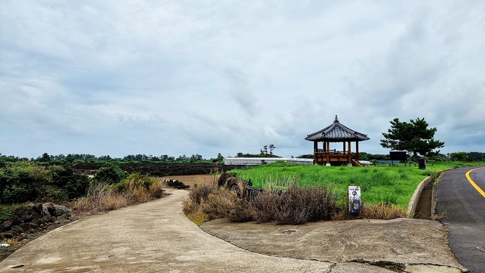나지막한 언덕길을 따라 걸으니 멀리 정자가 눈에 들어왔다. 탐방객들이 쉴 수 있도록 만든 진빌레정입니다.