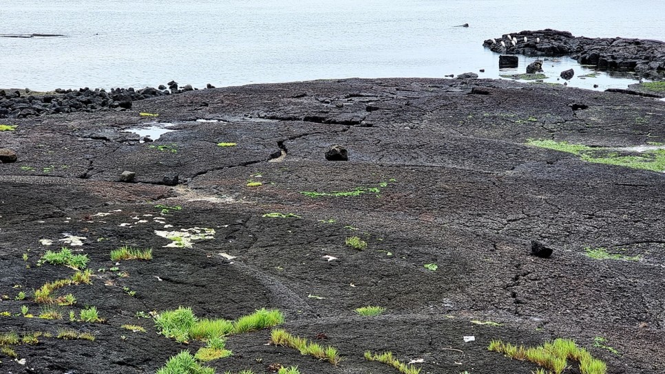 짐빌레밭 담장길로 들어서면 화산이 폭발해 흘러내리고 바다에 이르러 굳어진 검은 용암덩어리가 눈에 들어온다. 화산이 만들어낸 신비로운 용암이 덮고 있는 풍경이다. 진빌레의 ‘진’은 ‘길다’, ‘빌레’는 ‘납작하게 펼쳐진 암반’을 뜻하는 제주어다. 넓은 암반이 길게 이어진 지형을 말한다. 짐빌레는 지금으로부터 200만 년 전 바닷속 지하에서 마그마가 올라와 바닷물과 만난 강력한 폭발을 일으키는 과정에서 만들어진 것이다.