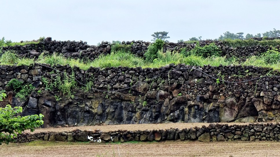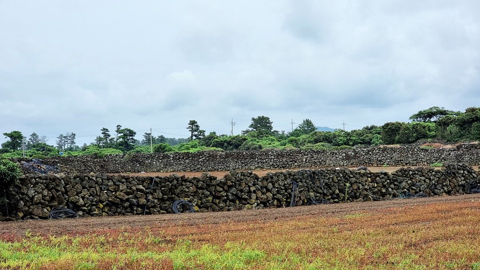 진빌레밭 담장을 따라 걷다 보면 제주밭 담장의 진수를 느낄 수 있을 만큼 다양한 종류의 밭담장이 눈에 들어왔다. 혹자는 이렇게 제주밭 담장이 꾸불꾸불 이어지는 풍경을 보고 흑룡만리라고 표현하기도 한다.
