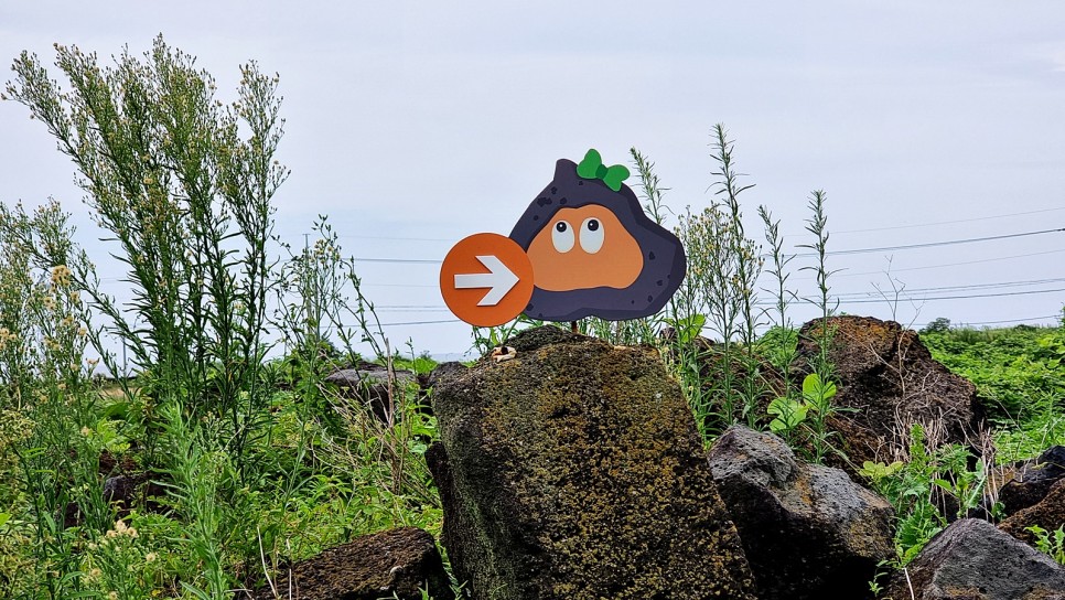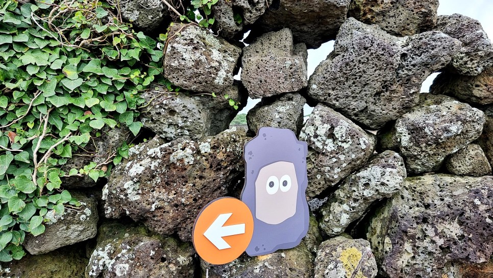 제주밭 담벼락의 캐릭터 ‘마돌’이다 마들은 제주어로 돌무더기라는 뜻이다. 여기서부터는 마도르가 조성한 빌레밭 담장길을 안내한다.