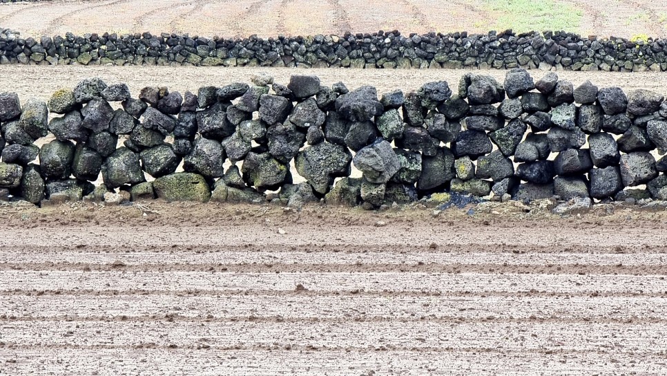 거무스름한 현무암으로 쌓아올린 밭담이 아주 인상적으로 다가온다. 밭의 담벼락에는 제주인의 지혜가 담겨 있다. 밭을 둘러싼 땅을 구획하는 기능을 넘어 농작물과 토양을 보호하려는 조상들의 지혜와 의지가 고스란히 담겨 있다. 그 지혜는 밭담의 구조와 다양한 유형에서도 그대로 드러난다. 밭담 만들기는 특별한 장인이 필요 없다. 돌과 돌이 서로 맞물리게 쌓기만 하면 된다. 잘 쌓으려면 보고 배우는 오랜 경험이 필요하다.