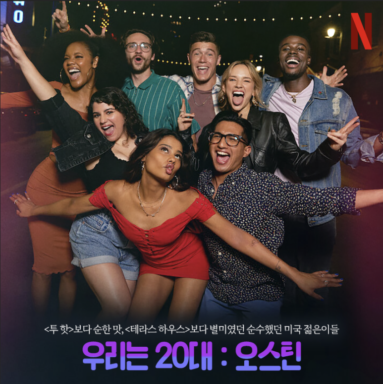넷플릭스 오리지널 우리는 20대: 오스틴은 미국 텍사스 오스틴을 배경으로 다른 지역에서 온 20대 남자 4명, 여자 4명이 한 집에서 사는 사랑, 그리고 성장에 관한 이야기를 담은 리얼리티 예능입니다.
