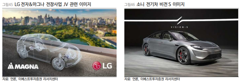 ● LG전자는 전기차, 자율주행차 관련 전장사업의 기반을 마련하기 위해 마그나, ZKW 인수 등 공격적인 투자를 통해 외형 확대와 내실을 동시에 다지며 시장의 영향력을 확대하고 있는 소니의 경우 4차 산업(IoT) 시대의 눈으로 불리는 이미지센서 사업의 경쟁력 강화와 비전S의 연구개발을 지속하고 있다.