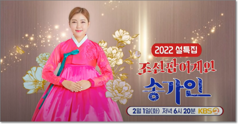 2022 설 특집 방송 ‘조선팝어게인 송가인’이 오늘 방송될 예정입니다. 민속 대명절인 설을 맞아 KBS를 통해 송가인의 특별한 국악 무대를 안방 첫줄로 감상할 수 있게 되었습니다. 언제나 명절만 되면 특별한 설 특집을 선보이는 KBS에서 지난해 말에는 임용은 콘서트를 선보여 많은 사랑을 받았습니다. 이번에는 송가인의 무대를 볼 수 있겠네요. 정말 많은 분들이 이 시간을 기다리고 계실 거예요.