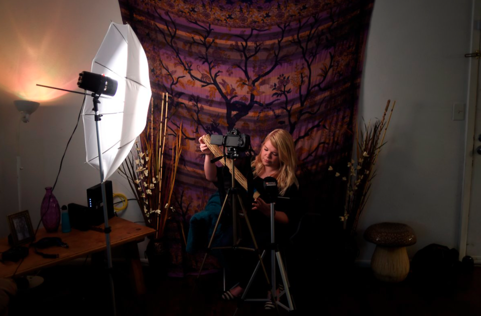 유튜브에서 레인스틱(rainstick)으로 부드러운 소리를 ASMR 비디오로 녹화한 장면 (출처 : 게티이미지코리아)
