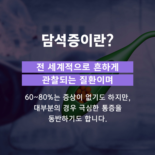 동서양을 막론하고 세계적으로 흔히 관찰되는 질환 중 하나가 담석증입니다. 성인의 10~20% 정도, 우리나라의 경우 정확한 통계 수치는 없지만 약 5~10% 정도에서 환자가 발생하는 것으로 보고 있습니다. 평균 수명이 연장되는 것은 물론 복부 초음파 기술이 발달하면서 건강검진을 받는 경우가 늘어나면서 담석증 진단이 이뤄질 확률도 점점 높아지는 추세입니다.