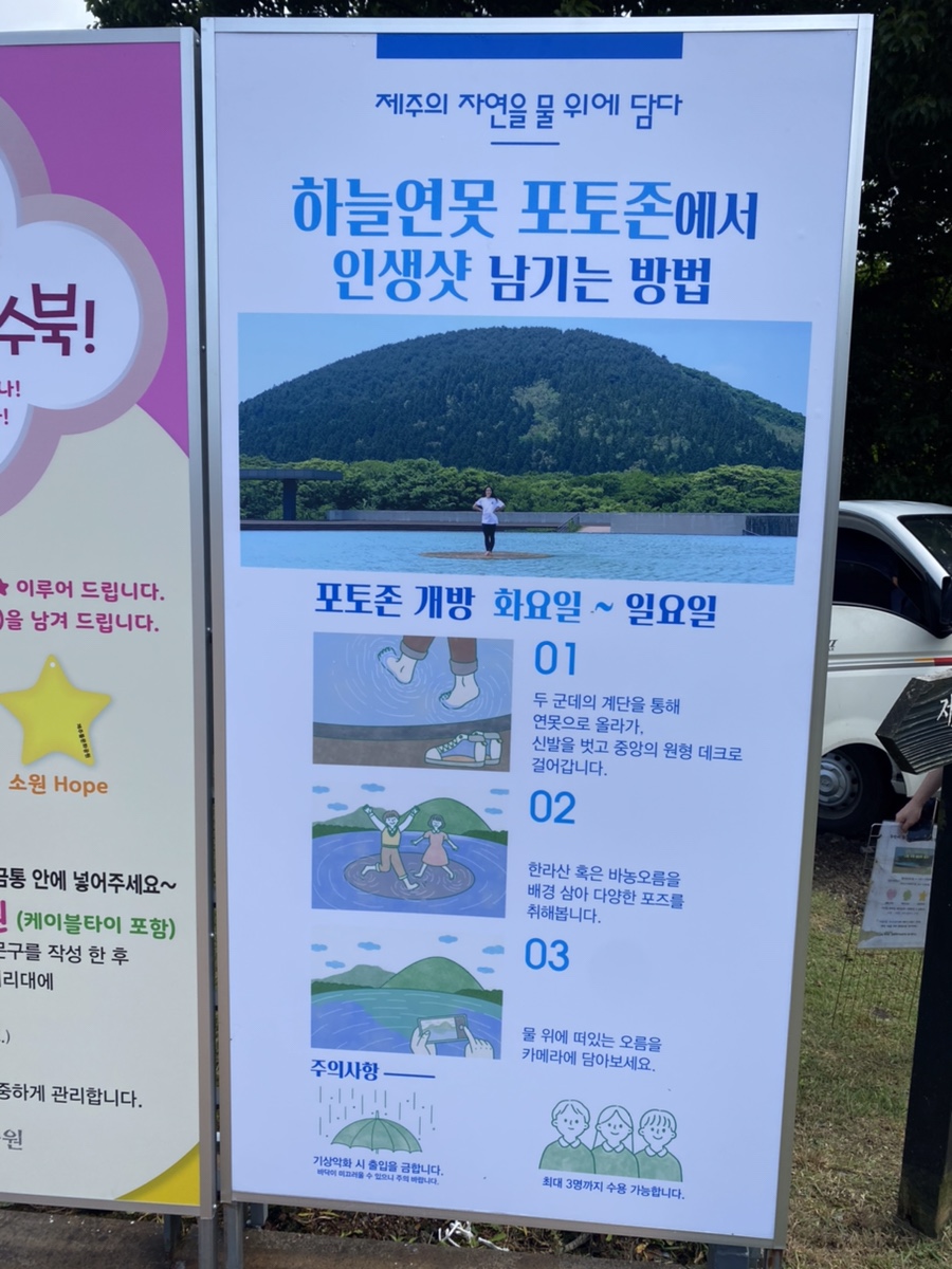 제주석박물관을 가는데 하늘 연못 포토존이 있네요배경은 한라산 혹은 캐논 오름이라고 하는 도중 물을 가로질러 중앙의 원형데크에 가서 사진을 찍을 수도 있어요.제가 갔을 때 사람이 없어서 뿌듯하게 마음껏 인생샷을 찍었어요.~가 정말 이뻐요! 그럼 돌박물관 건물로 들어가겠습니다.