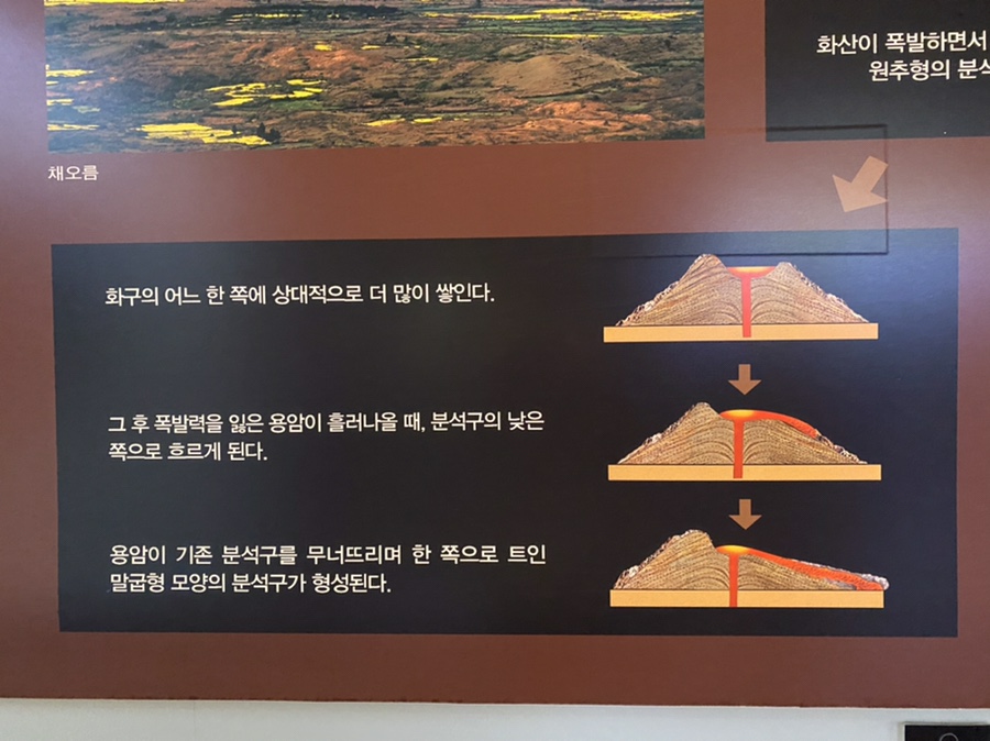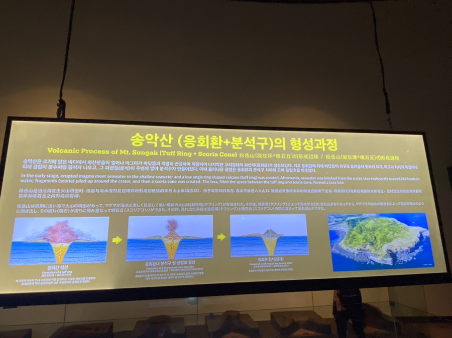 송악산의 형성과정을 자세히 설명해준다.이번엔 송악산이 또 다른 모습으로 보이네요!