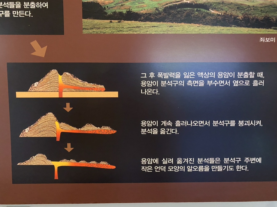 오름의 형태를 알 수 있습니다.이제 오름의 형태를 조사하면서 알 오름인지 말굽형의 분석구인지 알 수 있어요.오름을 좋아하시는 분들은 꼭 들러서 한번 봐보세요더 즐겁게 올라갈 수 있을 것 같아요