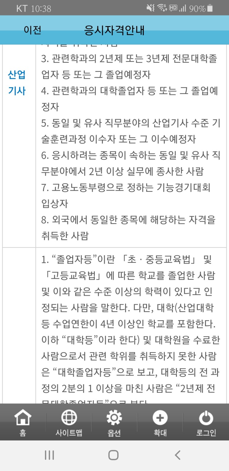 기사는 1급 시험, 산업기사는 2급 시험. 그래서 산업기사 응시자격이 좀 더 낮고 기사가 좀 더 높은 자격을 요구한다.이 중 하나라도 해당하면 산업기사 응시 가능!