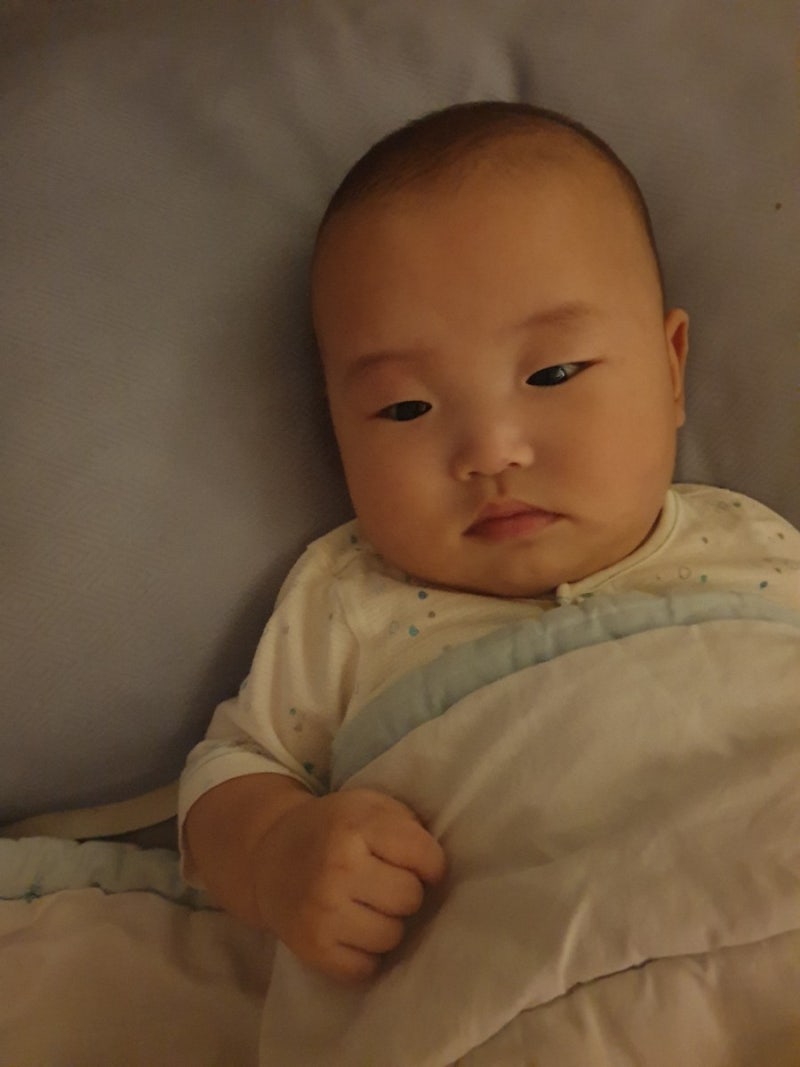 아니, 15일 공휴일에 종합병원에 가서 코로나19 PCR 검사 후 엉덩이 해열 주사를 맞고 “그만둬”라고, “아”라고 말했다며 아프다고 강하게 표현하는 아들.(´;ω; ))