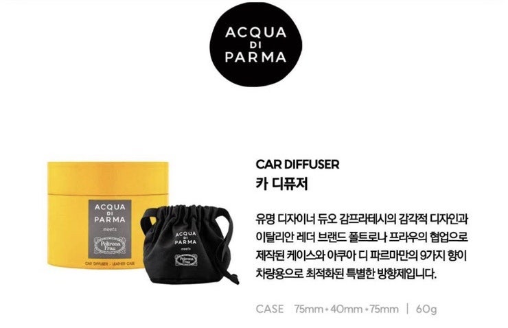 Last time I went shopping in Jamsil with my friend, I bought a car fragrance to give to Tungyi.The car’s fragrance is a hanging type, so whenever I put it on a room mirror, it shakes too much back and forth every time I cross the preventive level difference, so I decided to put it on the front door and bought the stationary fragrance that Tung-Dung examined.Today, I’m going to write a review of the car fragrance “Internal Money” of the Italian niche perfume brand Aqua di Palma (ACQUADI PARMA.