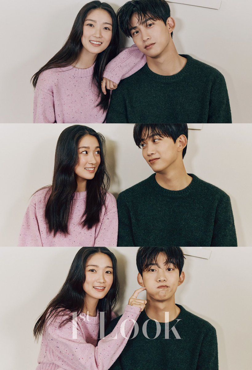 특히 겨울에 빛나는 소재.울 그리고 코듀로이.김혜윤은 달콤한 컬러감의 니트에 체크 패턴의 울 스커트를 착용.옥택연은 깊이 있는 컬러의 니트 에코 듀로이 팬츠를 착용.