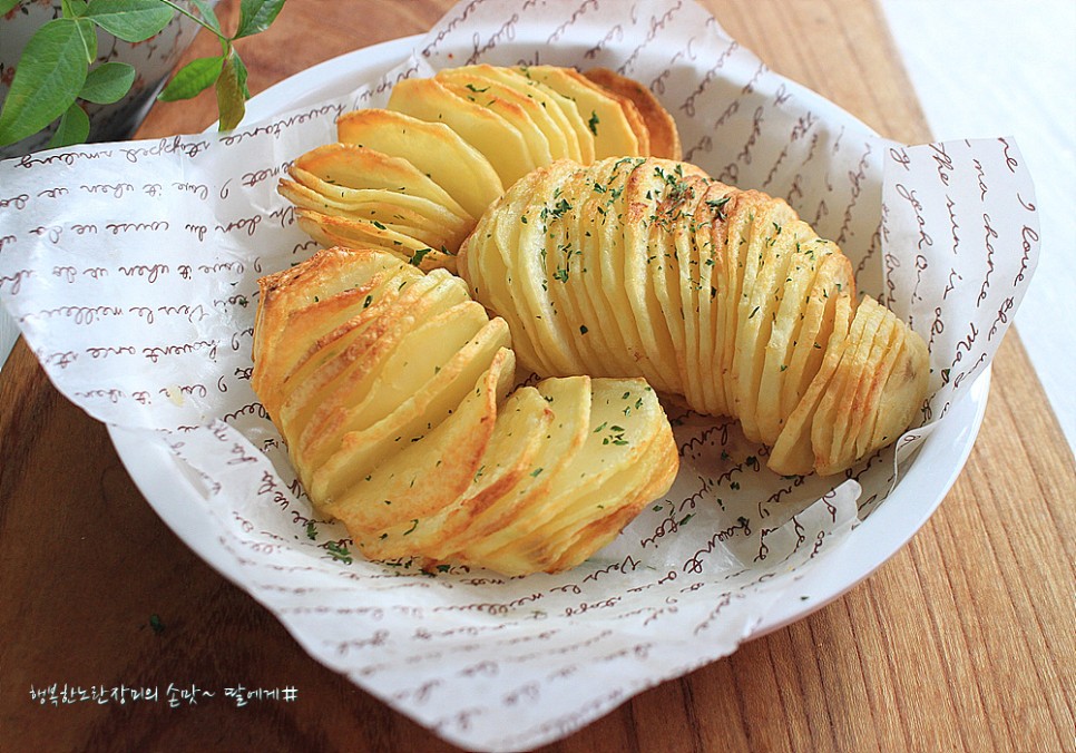에어프라이어로 구운 감자, 아코디언 감자 간식 만들기 대량으로 사둔 감자로 찌개도 만들고 반찬도 만들고~ 딱 2개 남았으니 간식 만들어 먹을 건 없는지 찾아보고, 전에 보고 신기했던 아코디언 감자를 만들어 먹기로 했다. 칼질이 난이도가 높아보였지만 생각보다 좋았어!!(웃음)