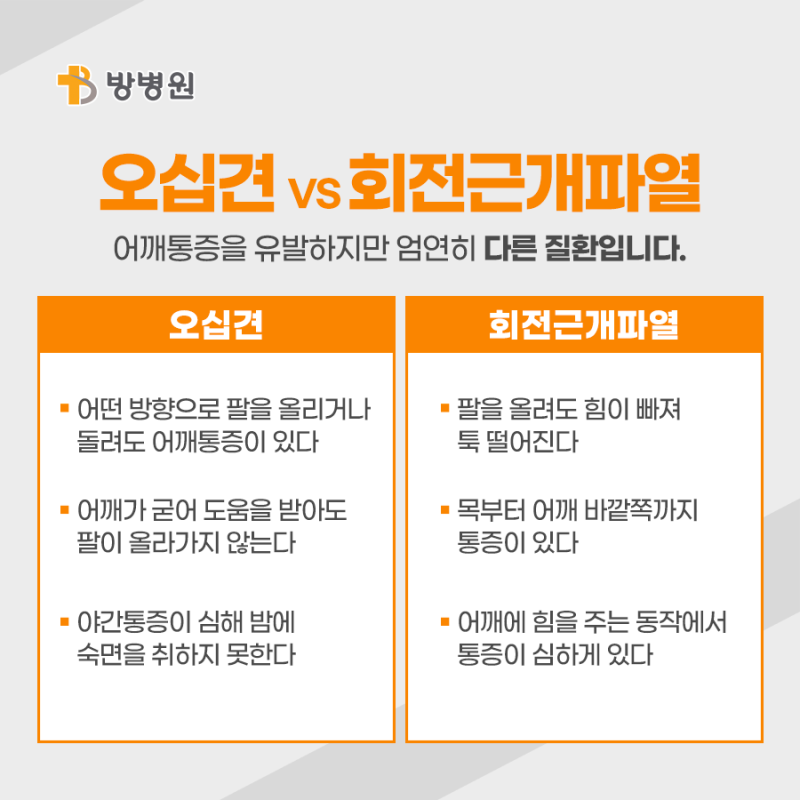 또 책상 앞에 오래 앉아 공부를 하거나 컴퓨터 작업을 많이 하는 경우에도 발생할 확률이 높습니다.이외에도 견관절을 과도하게 사용할 경우 어깨관절 내에서 선행질환이 염증을 일으켜 발생할 수도 있습니다.여러 요인으로 인해 오십견 증상이 나타나는 경우는 낮보다 밤에 통증이 심해지는 경우가 많아 팔을 들어올리는 동작을 할 때 많은 불편을 느낄 수 있습니다.또한 손을 들고 움직이는 머리카락 감기, 면도, 빗질 등을 할 수 없을 정도의 통증이 나타나기도 합니다.