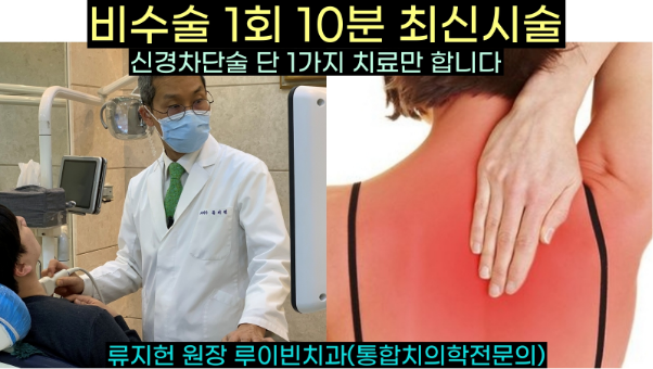 이럴 때 확실한 신경통 치료는 바로 통합치의학 전문의가 모든 시술을 직접 하는 1회 10분짜리 최신 시술이다. 2005년부터 임상 17년간 치과의사 29년의 전문의가 치료해온 이 치료는 입안의 턱근육 속의 이상신경(근육추체)만을 찾아내 고성능 신경탐색기로 탐색하여 정밀 차단하는 시술이다. 그리고 잘 때는 듀얼밸런스 구강내 장치인 마우스피스를 위아래 치아에 끼고 자게 된다. 입 안에서 모든 시술이 행해지기 때문에 상처나 흉터가 없고 비절개 시술이기 때문에 감염염증의 위험이 없고 적어 항생제 복용이 필요 없는 건강치료다. 검사 및 시술, 구강 내 장치 제작, 수술 후 회복까지 총 5시간이면 가능하다. 누적 시술자 수만도 1만 명이 넘는다.