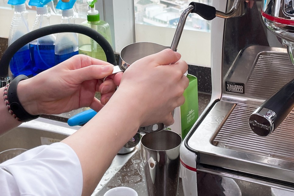 이 밖에도 우유 성분이나 특성을 이해하고 카푸치노를 만드는 과정도 배우고 장비 청소를 어떻게 해야 하는지도 알려주었습니다. 학생들이 함께 머리를 맞대고 ‘좋은 service’가 무엇인지에 대해 생각하고 공부하는 과정도 매우 뜻깊었습니다.
