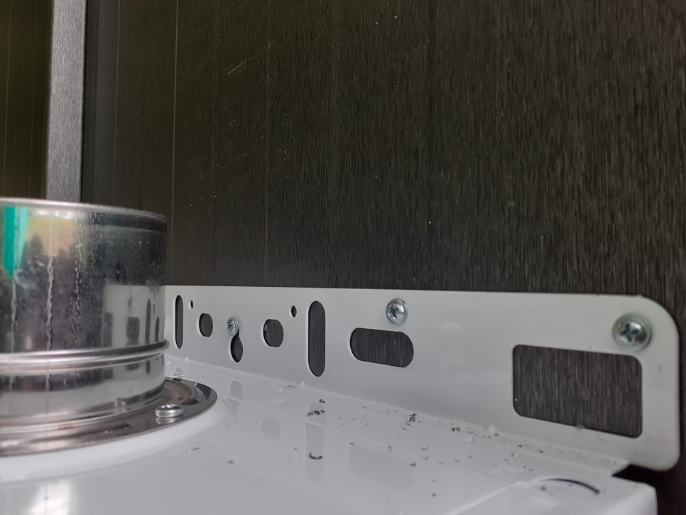 고정 브래킷을 사용하면 좋겠지만 이렇게 패널에 본체를 고정할 때는 직결 조각을 사용하는 것이 오히려 나을 수도 있습니다. 상부 브라켓에 넉넉하게 스크류를 박고 하부에도 고정하여 견고한 고정력을 가질 수 있도록 작업합니다.