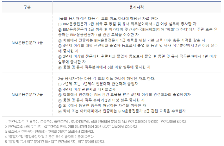 4. BIM 운용 전문가 자격증의 아쉬운 점이 많은 자격증