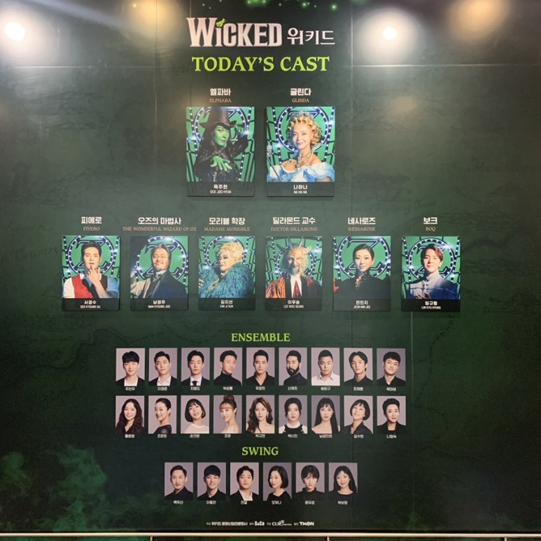 5년 만에 하는 삼연 공연이라 큰 기대가 컸는데, 지난해 국립극장 근처에서 광고를 볼 때마다 “가야지”, “가야지”, “그리고 옥주현과 엘파바”, “정성아그린다”의 조합은 사실상 올해 극이 마지막이 아닐까 조심스럽게 예측하고 꼭 가기로 다짐했어요.
