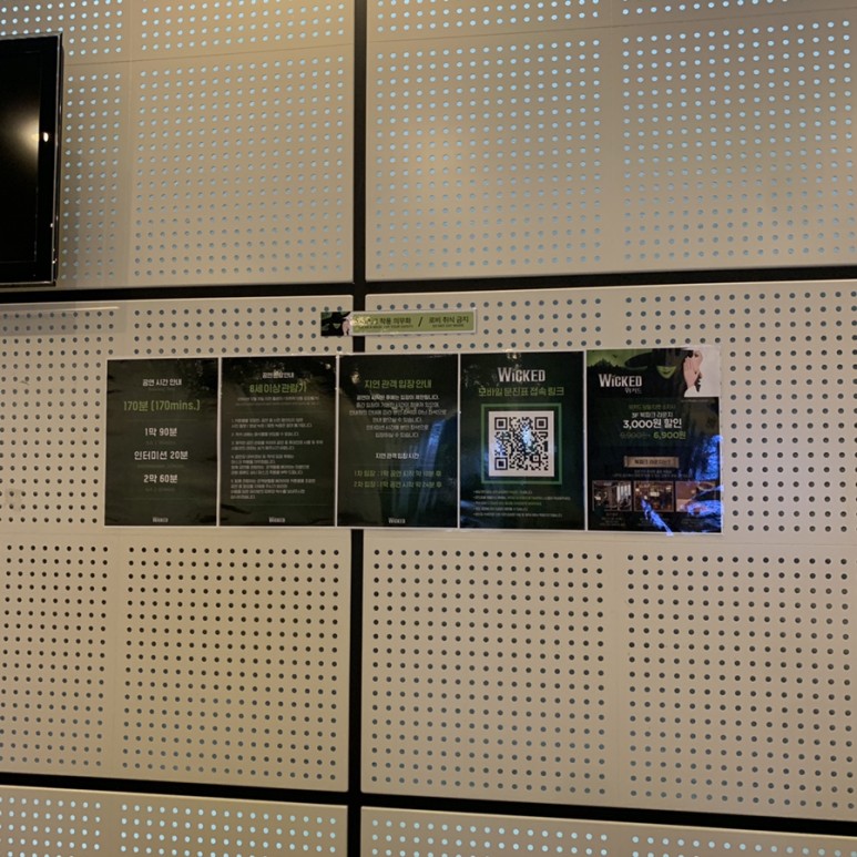위키드의 공연 시간은 1막 90분, 인터미션 20분, 2막 60분 총 170분으로 진행됩니다!