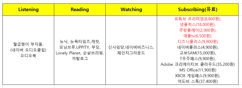 여기에 각종 유료 구독 서비스를 모두 더하면 월 17만원을 구독료로 내고 있습니다. 구독료로 월급이 정말 오른다는 말을 실감하는 순간이네요
