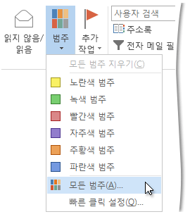 2. 선택한 해당 메시지의 마우스 오른쪽 단추를 누른 후 [카테고리] [모든 카테고리] 를 선택합니다.