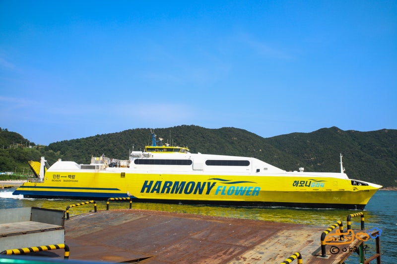 인천에서 대청도로 갈 때 타고 갔던 하모니플라워호를 대청도에서 백령도로 갈 때도 타고 갔다. 하모니 플라워호는 차량을 선적할 수 있어서 조금 큰 편이다.