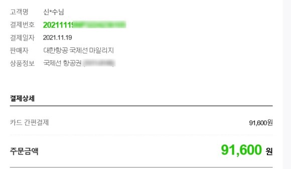 저는 아시아나 마일리지로 예약을 했고, 저는 아시아나 편도 결제를 했습니다.