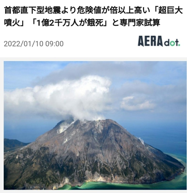 일본 수도 직하형 지진보다 위험치가 2배 높은 초거대 화산 폭발 1억 2천만 명 아사 https://topics.smt.docomo.ne.jp/article/dot/nation/dot-20220108000122022/01/1009:00AERAdot