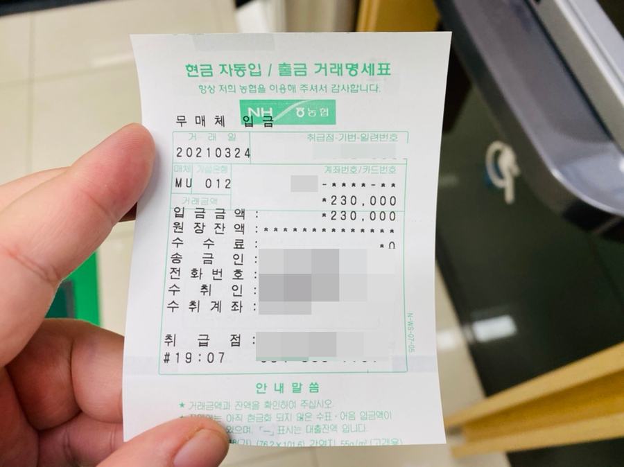 거래결과는 이렇게 화면과 영수증을 통해 확인할 수 있습니다.